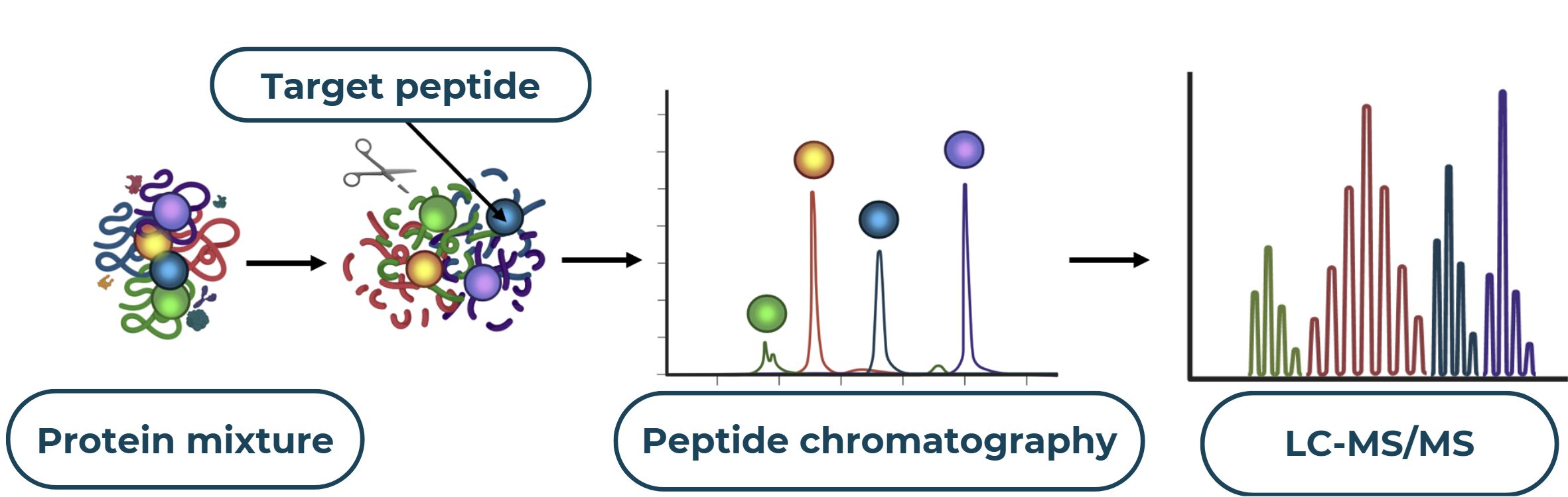 A typical quantitative protein analysis workflow follows these five  steps: sample preparation è protein digestion è peptide separation using high-performance liquid chromatography (HPLC) è peptide ionization and fragmentation utilizing mass spectrometry (MS) è data processing.